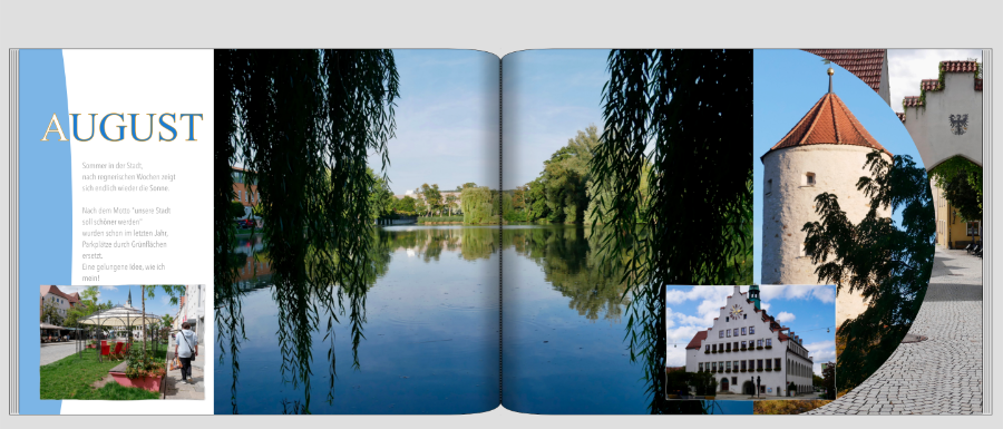 Meine Augustseite. Ins Jahrbuch kommt sehr wahrscheinlich nur eine Seite aus dem Urlaub. Der Rest der Bilder