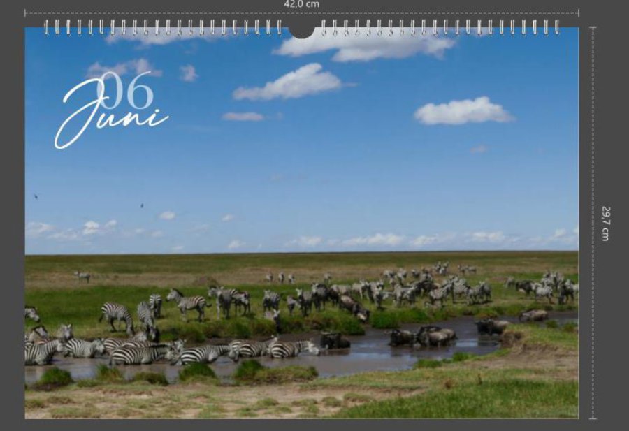 Dazu wählte ich eine frei gestaltbare Kalenderversion. Kalendarium und Monat wurden weit nach außen, in den nicht mehr sichtbaren druckbaren Bereich verschoben. Danach habe ich Monat und Zahl als Textfeld eingefügt. So kann jeder gewünschte Font verwendet und auch entsprechend bearbeitet werden. Das Ergebnis sieht dann so aus. Kann aber noch nach Belieben verändert, bearbeitet oder platziert werden. Liebe Grüße