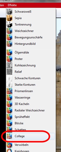 Re: Fotoschau, CollagenHallo @Rotuma, das ist sicher nicht das, was @Foto-Fun sucht, sondern tatsächlich die Funktion in der Fotoschau, die überhaupt nicht identisch ist und deren Bezeichnung schon in der Vergangenheit kritisiert wurde. Allerdings weiß ich nicht, warum Foto-Fun die nicht findet, denn die ist unter "Effekte" sehr wohl vorhanden: