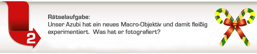 Advent, Advent das zweite Lichtlein brennt – Adventsrätsel der CEWE Fotowelt Mit vier kleinen Rätseln möchten wir auf die Weihnachtszeit einstimmen. Jede Woche erhalten Sie die Chance auf ein attraktives Vorweihnachtsgeschenk. Das aktuelle Rätsel ist ein Bilderrätsel. Können Sie die Aufgabe lösen? Gewinn: Digital fotografieren mit Pavel Kaplun (DVD ) & CEWE Gutschein im Wert von 25 Euro Spieldauer: 08.12 - 15.12.2012 Hinweis: Für die Teilnahme an diesem Adventsrätsel ist die richtige Beantwortung des Rätsels erforderlich. Bei mehreren richtigen Antworten entscheidet das Los. Jeder Teilnehmer nimmt unabhängig von der Anzahl der Antworten und Registrierungen im Forum, mit einem Los an einer Verlosung teil. CEWE COLOR vergibt pro Adventsrätsel einen Hauptpreis. Nach Abschluss des wöchentlichen Adventsrätsels wird der Gewinner im Forenbeitrag genannt und schriftlich benachrichtigt. Wir wünschen Ihnen viel Spaß und viel Glück bei unserem 2. Adventsrätsel. Anmerkung: Klicken Sie die Bilder, sofern Sie diese vergrößern möchten. Sylke Re: Rätsel: Advent, Advent das zweite Lichtlein brenntDer Mutigen gehört die Welt: