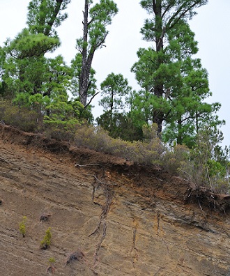 Auf dem Weg zum Anagagebirge war ein Abruch etwa 25 Meter hoch und da hat man schön die Pfahlwurzeln der kiefer und anderen niedrig wachsenden Streucher gesehen. Es ist aus fazinierend wie die Bäume bei den kargen Bedingungen wachsen können. Aufgenommen mit Nikon J1