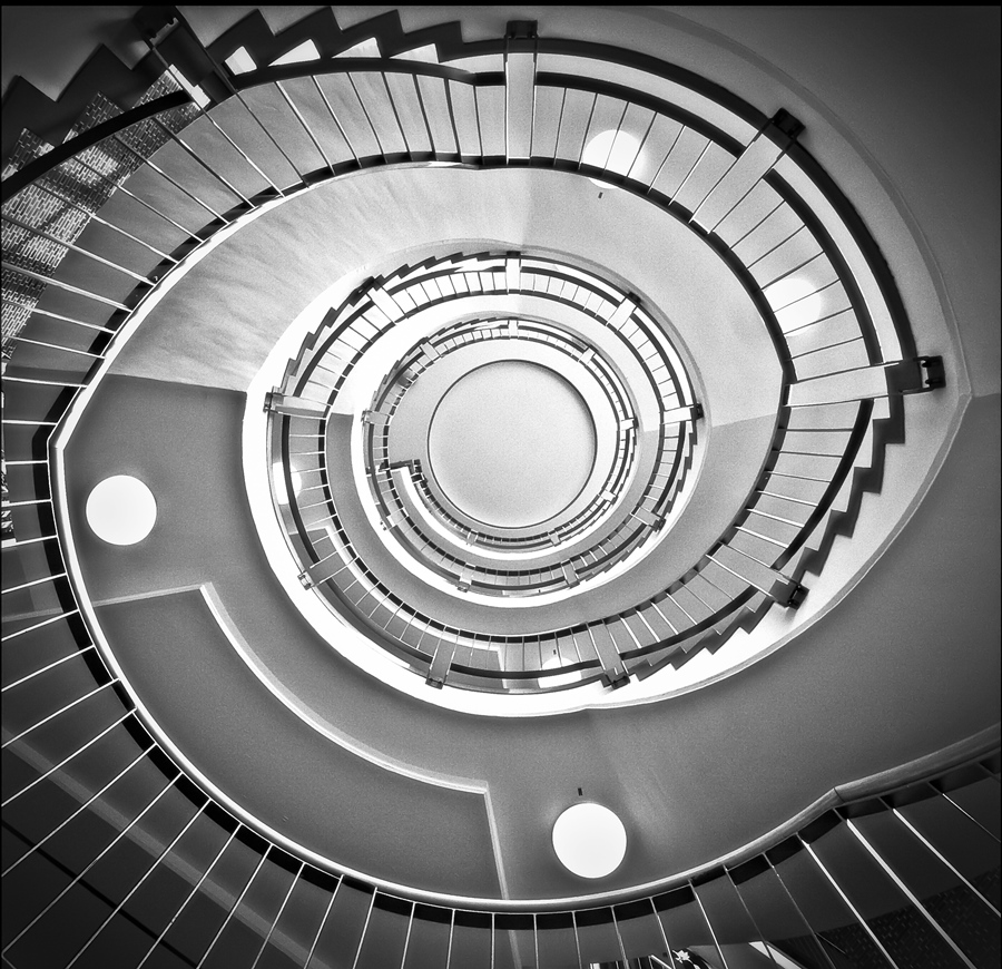 Ich heiße Markus, lebe in Berlin und fotografiere ab und an auch Treppen. Die Fisheye -Perspektive habe ich mit einer D800 kürzlich in Leipzig gemacht. Das zweite Bild ist mit einer D90 in Bx entstanden und Nr.3 entstand ebenfalls mit einer D90 im Naturkundemuseum in Berlin (zumindest die Treppe ;-) )
