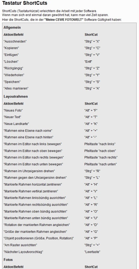 Re: Größe von Fotos im Fotobuch einstellen Version 5.1.2KerstinG hat geschrieben: Gibt es da eine Seite, wo die Tastencombis alle aufgelistet sind?