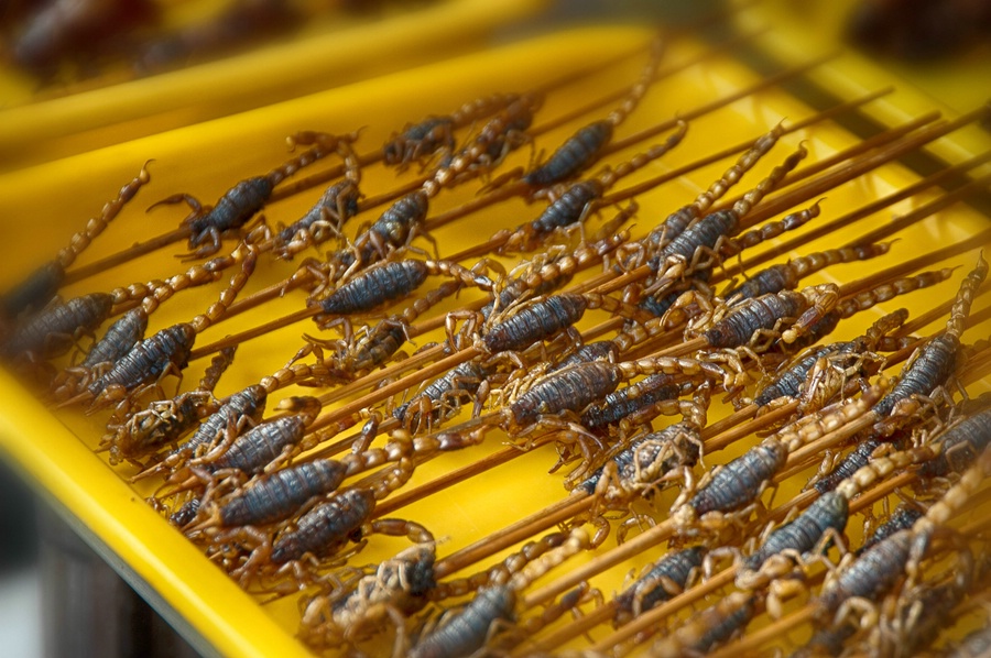 Als Vorspeise "frittierte Skorpione" und danach ein Brathähnchen! Beides aus Peking. (Andere Länder andere Sitten Re: Challenge 08/2014 • AufgetischtDann will ich mal die Tafeln ausbreiten - sozusagen :lol: :