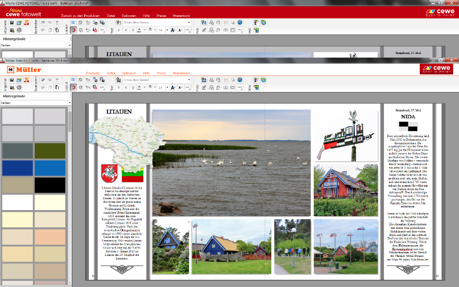 Ich hätte wenigstens eine Fehlermeldung erwartet. Das ist für den Preis ärgerlich. Ich schau mir das jetzt bei Müller an und dann lass ich es halt gleich da, falls die Hintergründe dort auch weiß sind. Re: Hintergründe bei versch. Handelspartnern nicht vorhandenDas Problem hatte ich auch vor kurzem, auch ich habe mit der ungebrandeten Version gearbeitet und dann aber bei Müller online bestellt. Hätte ich öfters ins Forum gesehen, dann wüsste ich natürlich, dass man weder Handelspartner noch Versionen im Buch wechseln sollte, war also mein Fehler. Ist aber doch ärgerlich, dass nicht alle Partner und Versionen die gleichen Standardhintergründe anbieten. Aber deswegen das Buch erst gar nicht abholen, ist nicht ok und geht gar nicht!! Wie kommt denn Müller dazu, dass er jetzt auf den Kosten sitzen bleibt? Das Richtige wäre das Buch zu reklamieren, obwohl in deinem Beispiel der weiße Hintergrund (für mich) schöner ist, da die Seiten ohnehin sehr überladen sind.