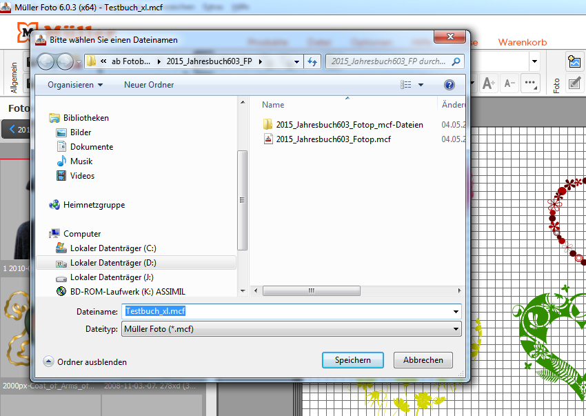 Kannst du denn ein in der Version 6.0.3 erstelltes, einmal gespeichertes Fotobuch nach dem nächsten Öffnen mit dem Speicher-Button speichern?nach einem Update der CEWE-Fotobuch-Software auf die Version 6.0.3 (Müller-Foto) kann ich eine mit der Vorversion begonnene mcf-Datei zwar problemlos laden, aber nicht mehr unter ihrem alten Namen speichern, sondern nur unter einem anderen Namen. liebe Grüße