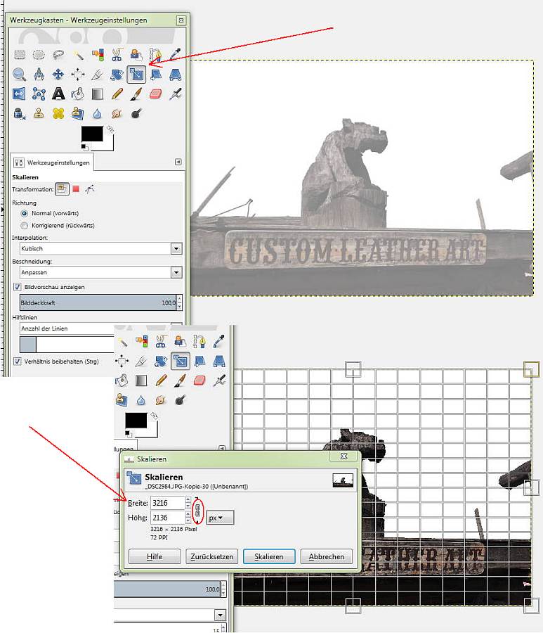 ich kann mir auch nicht erklären, warum deine Echse so blass ist. Ich hab mal mit einer Echse experimentiert, weil ich sehen wollte, ob vielleicht zuviele Farben weggelöscht werden, aber das war nicht die Lösung. Ist deine Datei denn teiltransparent? Ich meine damit, wenn du sie ins Fotobuch einfügst und über ein anderes Bild legst, kannst du dann das andere Bild durch die Echse sehen? Meine nächste Theorie wäre nämlich, wie nox schon angesprochen hat, dass du versehentlich die Ebenen-Deckkraft herabgesetzt hast. Dann müsstest du aber auch in gimp das Karomuster durch die Echse sehen. Und eigentlich bleibt diese Einstellung beim Schließen und erneuten Öffnen nicht erhalten. Schau mal nach, dann können wir das ggf. als Ursache ebenfalls ausschließen und weitersuchen. Du hattest auch gefragt, ob photoshop besser freistellen kann. Photoshop hat da schon bessere Werkzeuge. (Photoshop Elements leider nicht.) Aber um diese Funktionen und Werkzeuge nutzen zu können, brauchst du ebenfalls etliche Tutorials und Einarbeitungszeit. Du kannst es ja mal ausprobieren. Man kann Photoshop als 30-Tage-Testversion herunterladen. Tutorials für Photoshop gibt es im Netz zu allen möglichen Themen, natürlich auch Freistellen - und wesentlich mehr als für gimp. liebe Grüße