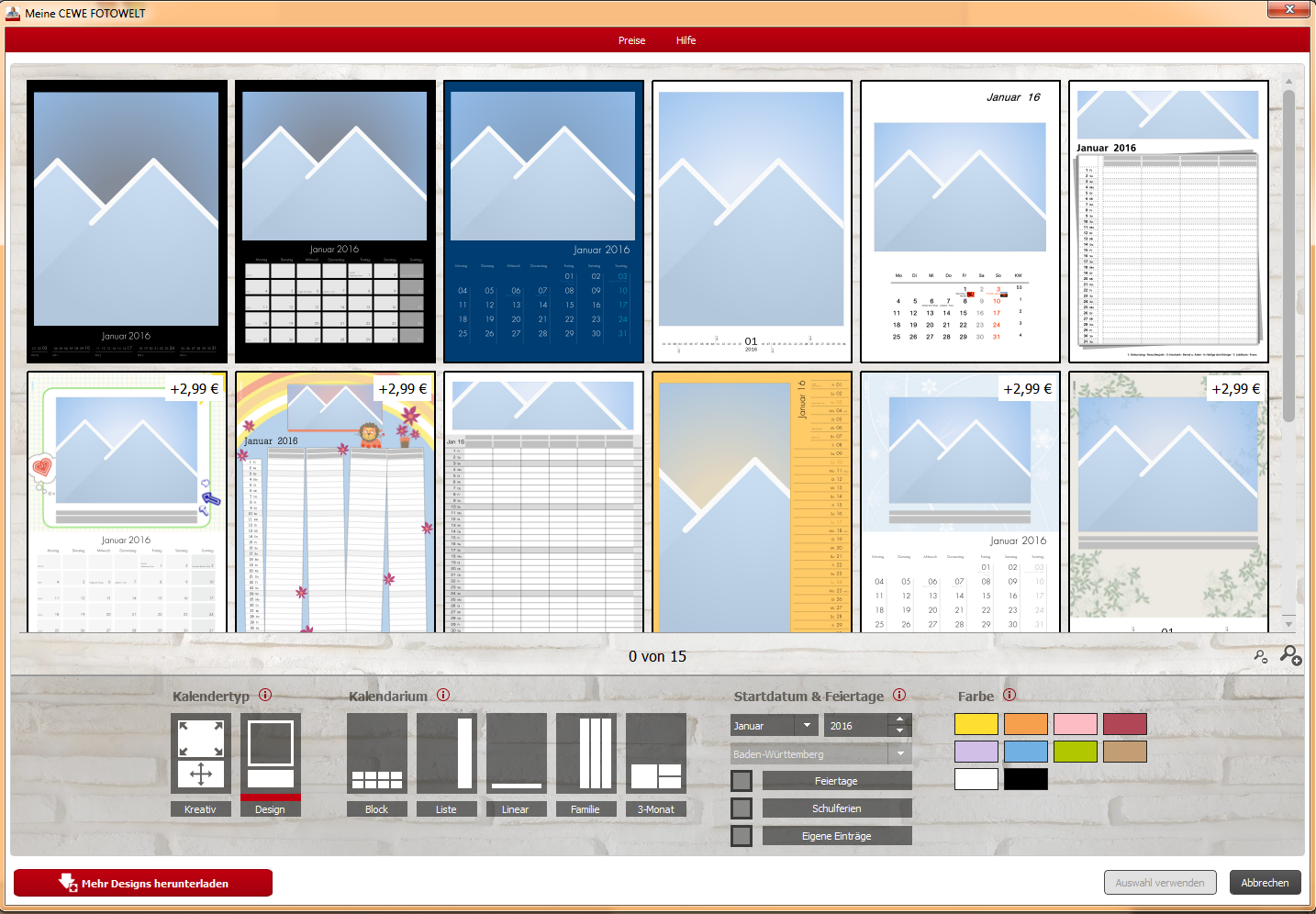Unsere Software CEWE KALENDER Bei der Kalender-Designauswahl steht die intuitive Bedienbarkeit im Vordergrund. Die neue Version bietet eine optisch neue Designauswahl und eine benutzerfreundliche Oberfläche. Bei den Designkalender haben Sie alle Einstellungen im Blick und können bei Bedarf mit einem Klick die Suche einschränken. Auch die Kreativkalender bieten mehr Flexibilität. Ab Version 6.1 können Sie die Farben der Kalender beliebig anpassen. Kalender im identischen Seitenverhältnis können nun in ein anderes Format konvertiert werden. CEWE WANDBILDER Lineal - Anzeige der tatsächlichen Produktmaße bei Wandbildern. Die Formatkonvertierung kennzeichnet diejenigen Formate, die mit Rahmen bestellt werden können. CEWE FOTOBUCH Um Ihnen die Bearbeitung des Buchrückentextes zu erleichtern, können Sie die Ansicht automatisch zoomen. Grusskarten Konvertierung von einseitig auf zweizeitig. Produktübergreifende Änderungen Über das Kontextmenü der Preisliste können Sie das gewählte Produkt direkt öffnen. In der Bildauswahl wird nun die Anzahl der Verwendungen im Produkt angezeigt. Wechseln Sie mit einem Klick zurück in den Startordner. Die Farben eingefärbter Cliparts können gespeichert werden. Im Auswahlfenster finden Sie den Menüpunkt "Meine Cliparts". Des Weiteren können Sie die gewählten Farben wieder auf die Grundeinstellung zurücksetzen. In den nächsten Tagen werden wir die Neuerungen in einzelnen Forenbeiträgen genauer vorstellen. Wir wünschen Ihnen viel Freude mit der neuen Version 6.1.0! Zuletzt als neu markiert von Sylke am 17.09.2015, 15:24. Sylke Wer ist online?Mitglieder in diesem Forum: 0 Mitglieder und 2 Gäste