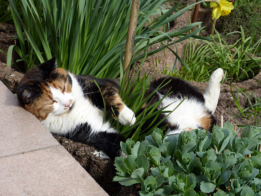Re: Challenge 01/2016 - Teppichlöwen oder GartenwölfeVom Teppichlöwen zum Gartenwolf oder ein Pflanztrog nur für mich: Unsere Katze Lilly findet es sehr gemütlich, sich mitten ins Blumenbeet in einen unserer Planztröge zu legen. Wenn ich mir die Fotos anschau, hab ich immer das Lied "Ich bin eine Blume" im Ohr