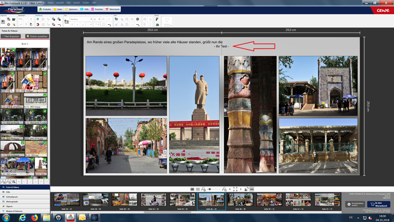 Was mir aber bei deiner Beispielseite nicht so gefällt ist, daß der Text über beide Seiten geht, also 58cm ! breit ist. Dies ist schwer zu lesen und ist auch in keinem Buch oder Magazin üblich. Ich würde sogar auf einer Seite zwei Spalten machen, deinen Text also über vier Spalten verteilen. --------------------------------------------------- Re: Im Textfeld verschwindet "Ihr Text" nichtHallo christiang,