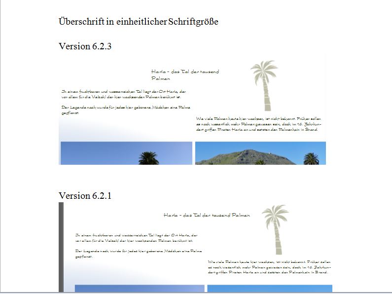 Re: Textfelder in der 6.2.3In der 6.2.4 sind die Texte zumindest auf dem Titel genauso verschoben wie in der 6.2.3. Die weiteren Seiten ahbe ich mir dann gar nicht mehr angeschaut.