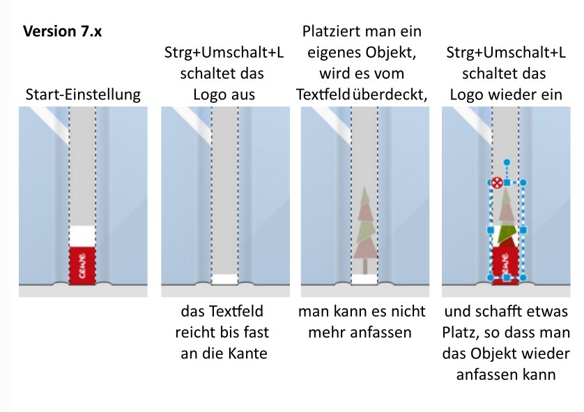 Versionsnummer: 7.x Beschreibung: Ich habe eine interessante Neuerung in der Version 7 entdeckt. Vielleicht findet ihr die auch nützlich. In meiner Tastaturbefehle-Tabelle habe ich ja schon den Shortcut für die Ausschaltung des Logos (Strg+Umschalt+L) auf dem Buchrücken eingearbeitet. Heute habe ich nun entdeckt, dass dieser Shortcut einen hilfreichen Nebeneffekt hat. Viele platzieren ja statt des CEWE-Logos ein eigenes Logo, eine Flagge o.ä. auf dem Buchrücken. Bisher war es umständlich, dieses Element wieder zu erreichen, wenn es komplett vom Rücken-Textfeld überdeckt war. Es gab immer wieder Anfragen deswegen. Jetzt gibt es eine relativ einfache Lösung: Wenn man mit der Tastenkombination Strg+Umschalt+L das Logo wieder einschaltet, entsteht zwischen Logo und Textfeld etwas Platz, so dass man sein eigenes Element wieder fassen und ausrichten, ändern o.ä. kann. Das funktioniert auch, wenn man das Logo mit der Entf-Taste anstatt der Tastenkombi gelöscht hat. Für die, die noch nicht mit der Version 7 arbeiten oder wenn das eigene Objekt an einer Stelle liegt, wo der Zwischenraum nicht ausreicht, um es zu fassen, gibt es eine Alternative: Von oben oder unten mit etwas Fingerspitzengefühl eine schmale Markierung über das Textfeld und das eigene Objekt ziehen. Dann bei gedrückter Strg-Taste auf das Textfeld klicken. Damit wird das Textfeld aus der Markierung entfernt und man kann das eigene Objekt anfassen. Schaut mal, welche Variante euch mehr zusagt liebe Grüße