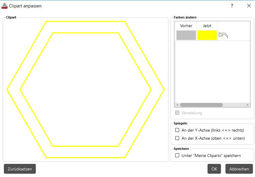 Per Doppelklick auf das Clipart bin ich in das Bearbeitungsfenster gelangt und dort habe ich die Farbe angepasst.