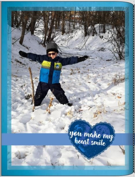 You make my heart smileFür diese CEWE FOTOBUCH Seite habe ich ein Foto mit Schrift- und Formelementen verziert.