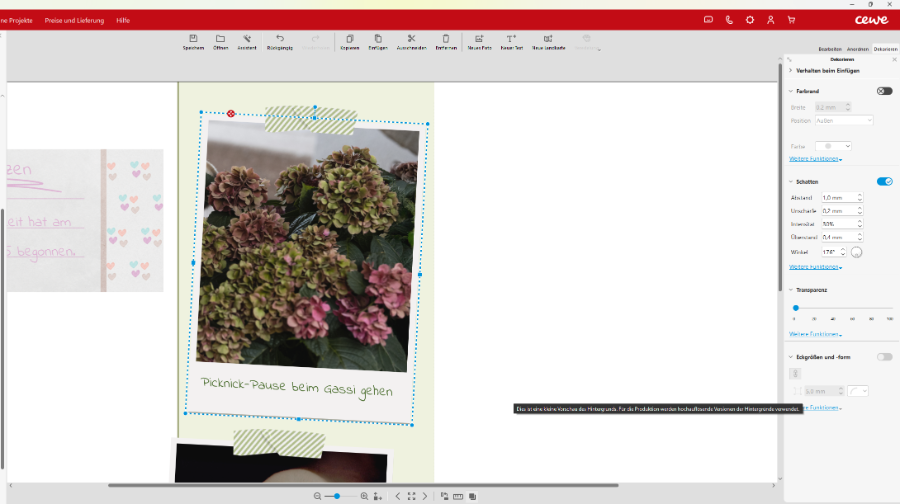 Wir laden Sie herzlich ein, die neue CEWE Community mit integriertem Forum zu entdecken und künftig zu nutzen. Das bisherige Forum, in dem Sie sich gerade befinden, steht nur noch bis Ende 2025 für neue Beiträge zur Verfügung und wird ab dem kommenden Jahr 2026 nur noch lesend zugänglich sein. Informieren und registrieren Sie sich jetzt in der neuen CEWE Community – wir freuen uns auf Sie! Schatteneinstellung für "Polaroid Fotos" im Fotobuch ?Guten Abend liebe Fotobuch-Gestalterinnen und Gestalter