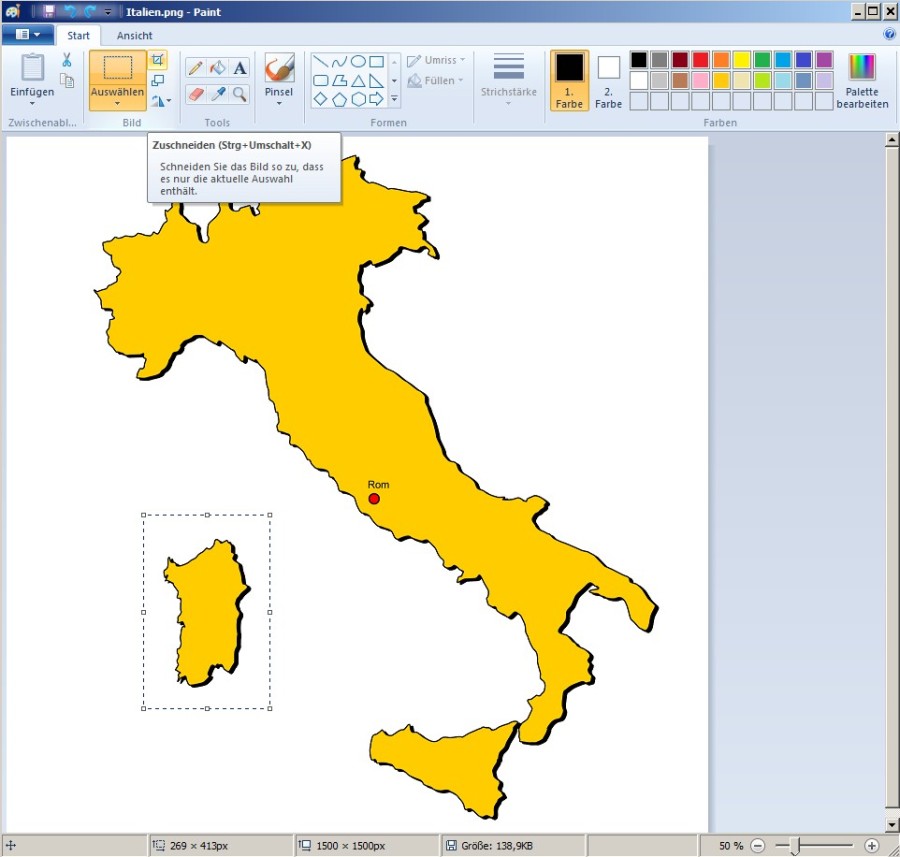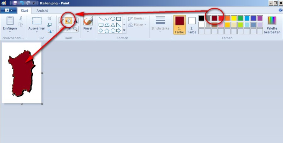 statt "Afrika" --> "Europa" und dort "Italien" auswählen: http://www.kostenlose-landkarten.de/europa.htm Die png-Datei kann über das Kontextmenü (Grafik speichern unter ...) abgespeichert werden. Das Rausschneiden der Insel Sardinien und das Umfärben mit Wunschfarbe kann z.B. mit dem Windows-Zubehör-Programm Paint erfolgen: