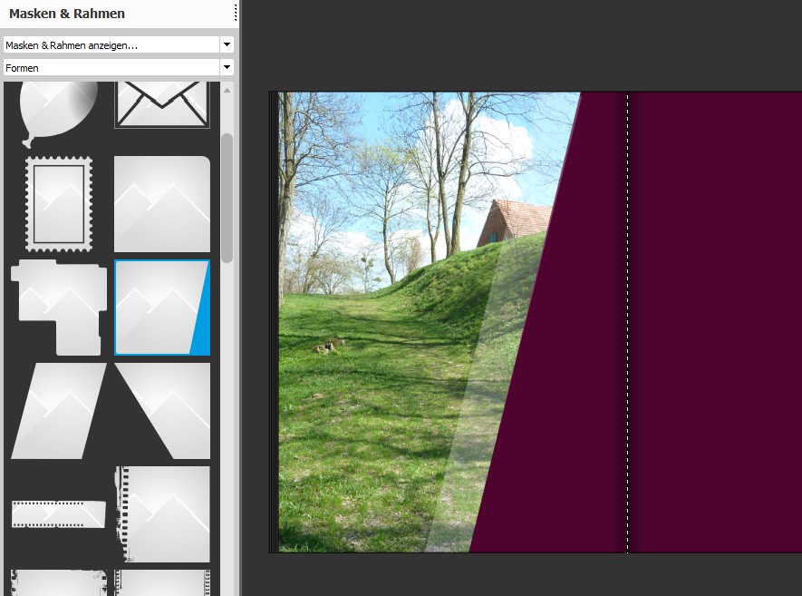 für den schrägen, transparenten Streifen auf S.16 würde ich so vorgehen: Cliparts -> Farben: das weiße Quadrat auf die gewünschte Seite ziehen. Das Quadrat durch Ziehen und Rotieren in die gewünschte Form bringen. Mit rechtem Mausbutton auf dem Quadrat das Menu "Transparenz einstellen..." wählen und die gewünschte Transparenz wählen (ich weiß nicht warum, aber die "Transparenzen" unter "Passpartouts" funktionieren in diesem Fall nicht). Ich hoffe, das ist das, was du gemeint hast. Wer ist online?Mitglieder in diesem Forum: Google [Bot] und 15 Gäste