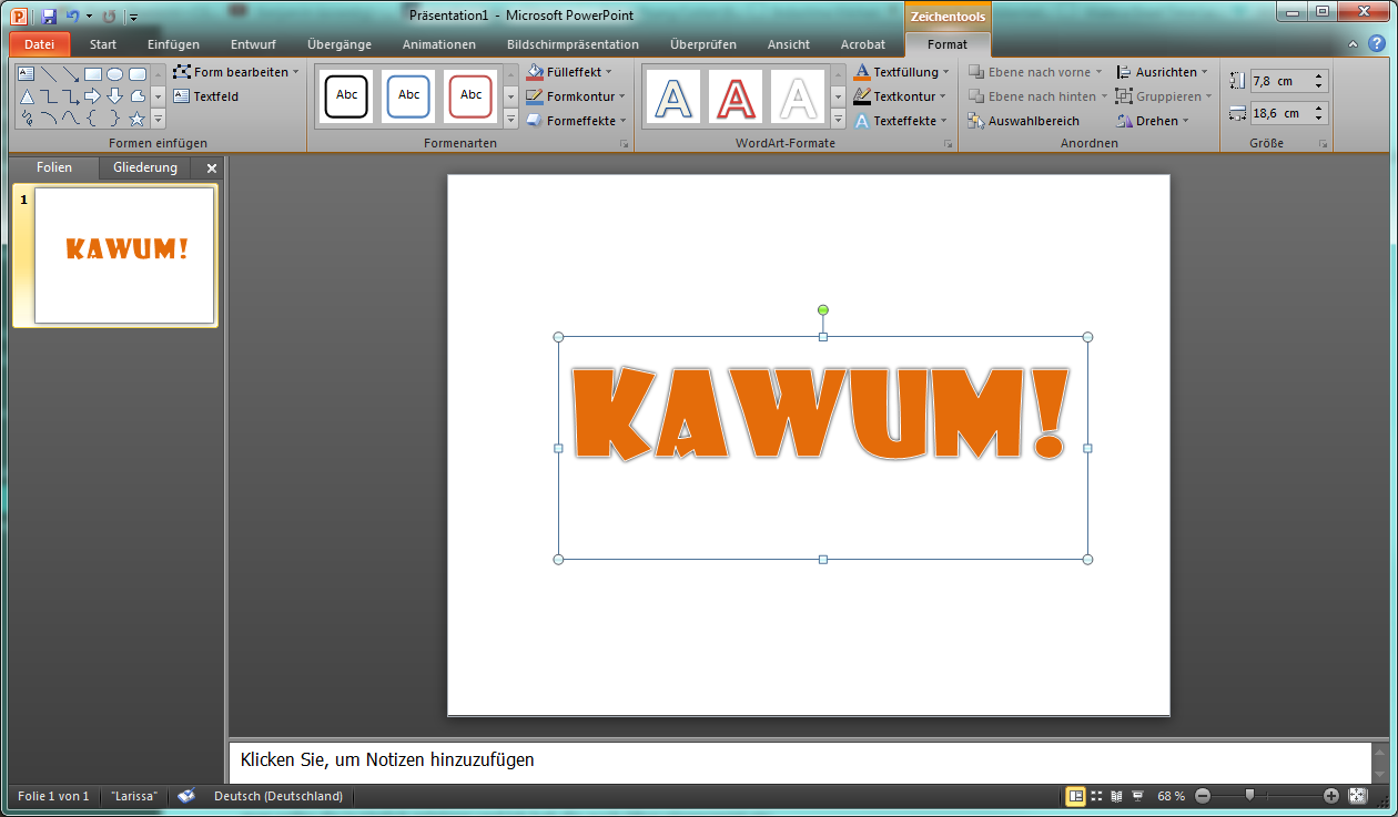 Wenn Sie diese Wörter jedoch noch deutlicher haben wollen, können Sie diese auch mit PowerPoint erstellen und anschließend in Ihr Projekt einfügen.