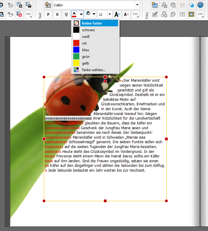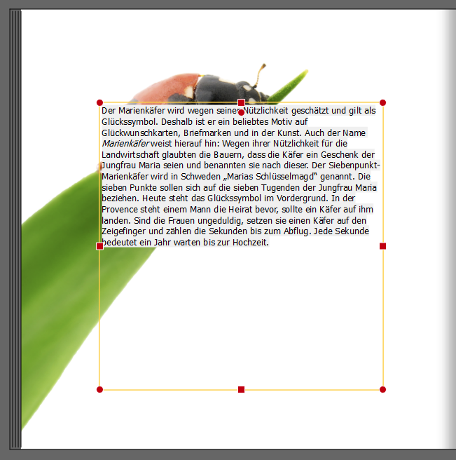 Vielleicht erinnern Sie sich noch an den Beitrag, in dem es um Initialen am Beginn eines Textes ging. Mit einem kleinen Trick, war auch dies leicht möglich. Ahnen Sie es bereits? Genau, mit der Funktion „keine Farbe“ können Sie Bilder leicht mit Text umfließen lassen. Falls Sie diesen Beitrag nicht gelesen haben, kann ich Sie natürlich beruhigen, denn natürlich werden wir Ihnen in diesem Beitrag Schritt für Schritt diese Gestaltungstechnik erklären.