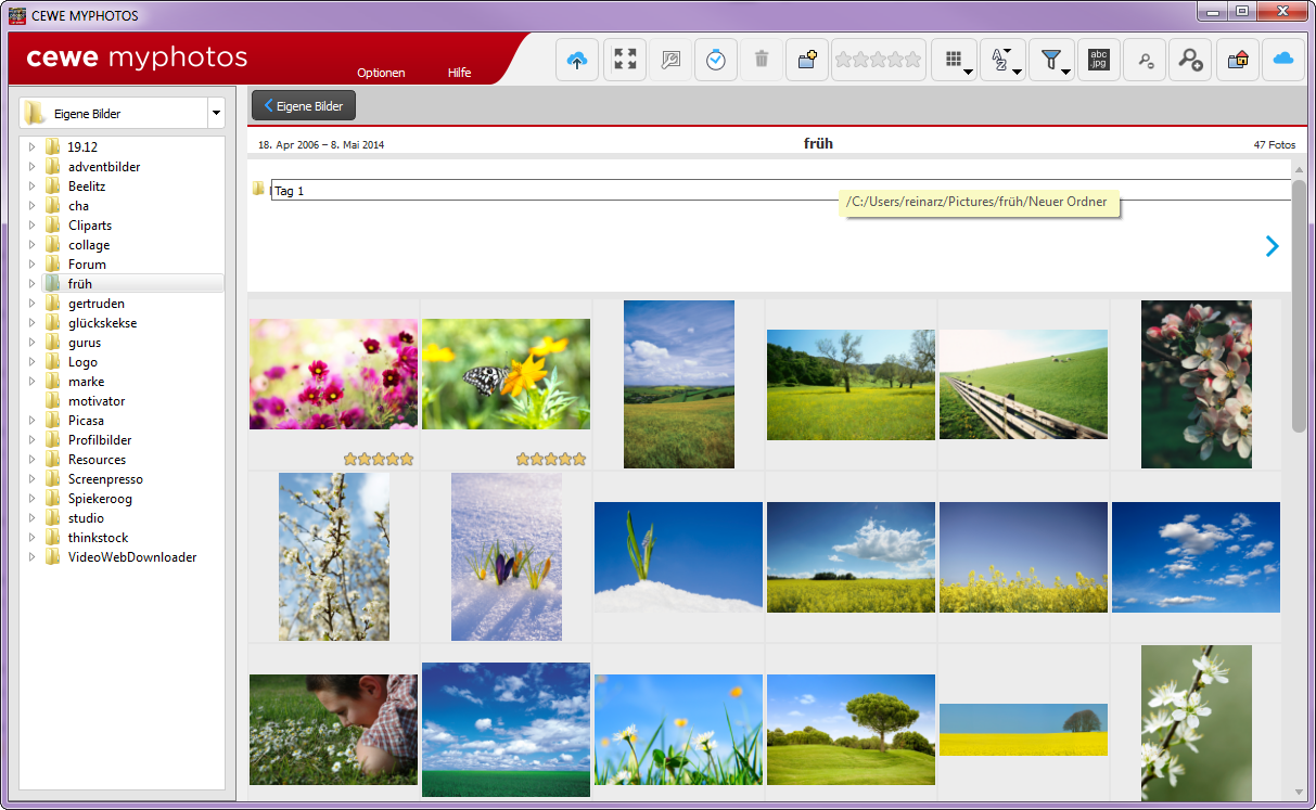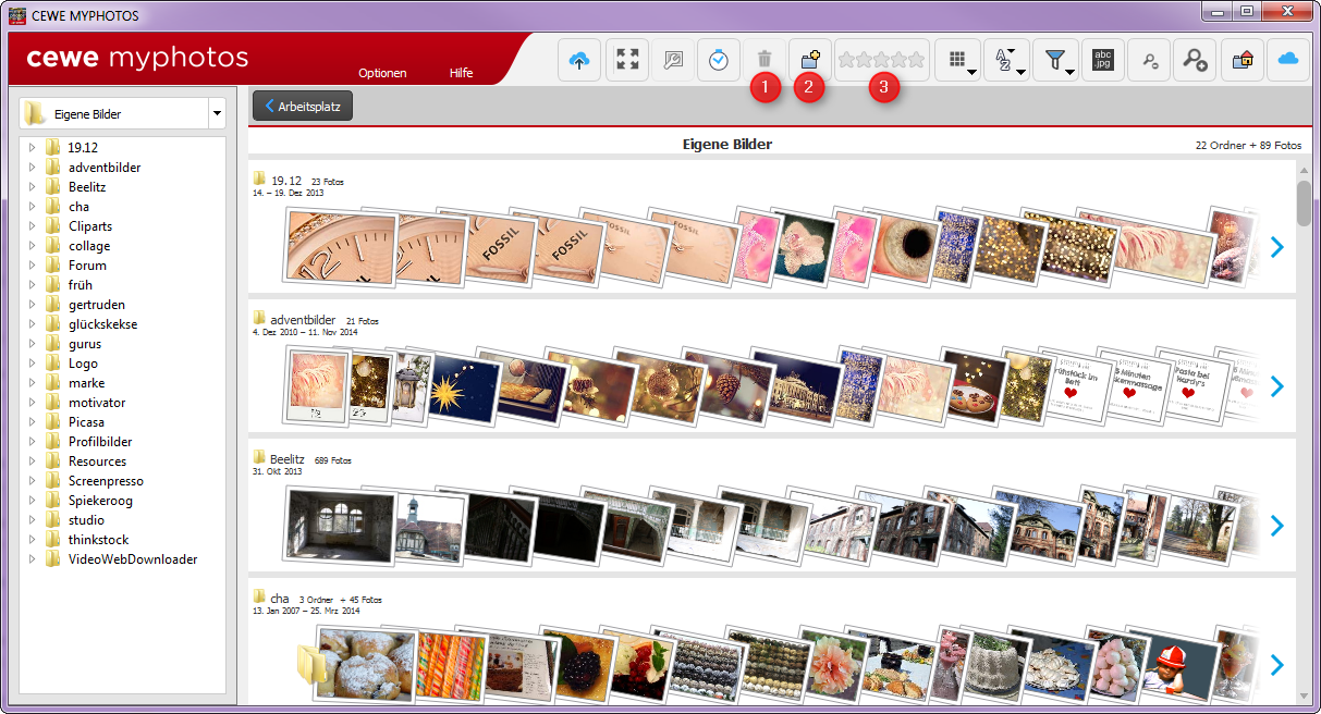 Bildverwaltung in der Fotoschau und CEWE myphotos