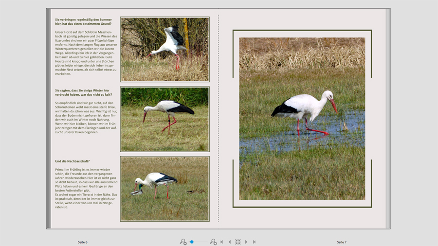 Hier eine weitere Seite, habe mich von A4 überzeugt, zumal da auch die kritischen Fotos noch grüne Smilies haben. Das war eigentlich der Hauptgrund für die Überlegung, eher ein kleines Buch zu machen. Die Texte sind noch nicht Korrektur gelesen.