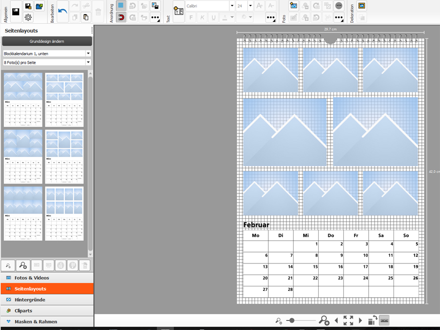Re: BilderrahmenBei Kreativkalendern kannst Du aber alles verändern, wie es Dir gefällt. Also Anzahl, Größe der Bilder, Position ect. Versuche mal den Button "Grunddesign ändern", da sind evtl. passende Vorschläge für Dich dabei. Hier kannst Du unter verschiedenen Kalendarien, Anzahl von Fotos wählen und auch noch vieles selbst anpassen.