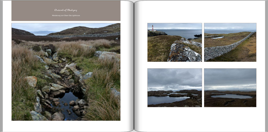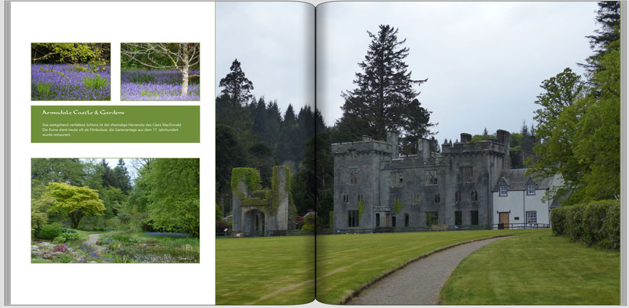 Im aktuellen Fotoprojekt Schottland sehen drei Doppelseiten dann z.B. so aus: