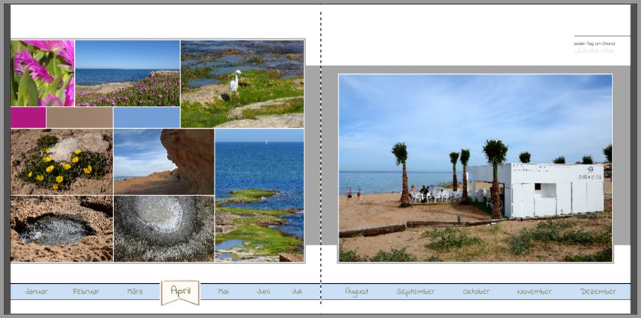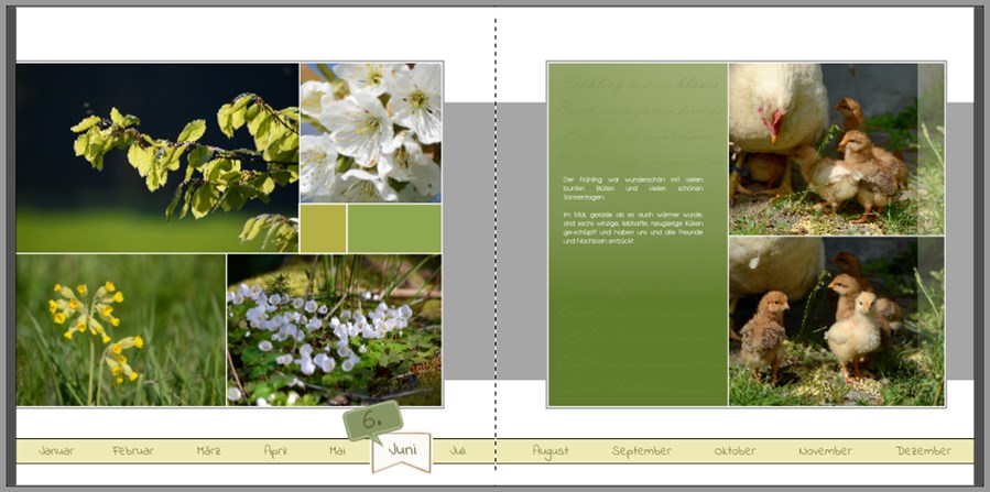 Hi Grasmuecke,here another two - rather simple - examples. I have seen them in some example books but I don't quite remember where. Have fun! Monat1.jpg Monat2.jpg Thank you Perhaps you remember that I like my photobooks as simple as possibel. Kind regards