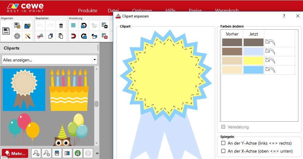 Das Alter meiner Tochter habe ich per Textbox über ein Clipart gelegt. Die Farben des Cliparts habe ich per Rechtsklick auf das Clipart angepasst, um besser zum Rest der Seite zu passen.