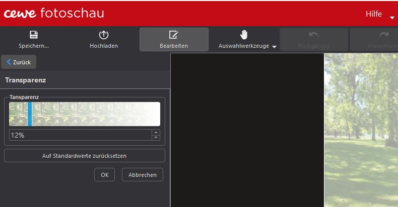 Um die Kreise stärker voneinander abzuheben, habe ich das Foto im mittelgroßen Kreis per Doppelklick in der CEWE FOTOSCHAU so angepasst, dass eine Transparenz entsteht.