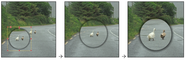 Zuerst habe ich von den Gänsen einen Ausschnitt erzeugt (Foto erneut ins Fotobuch geholt) und mit einer runden Maske belegt.