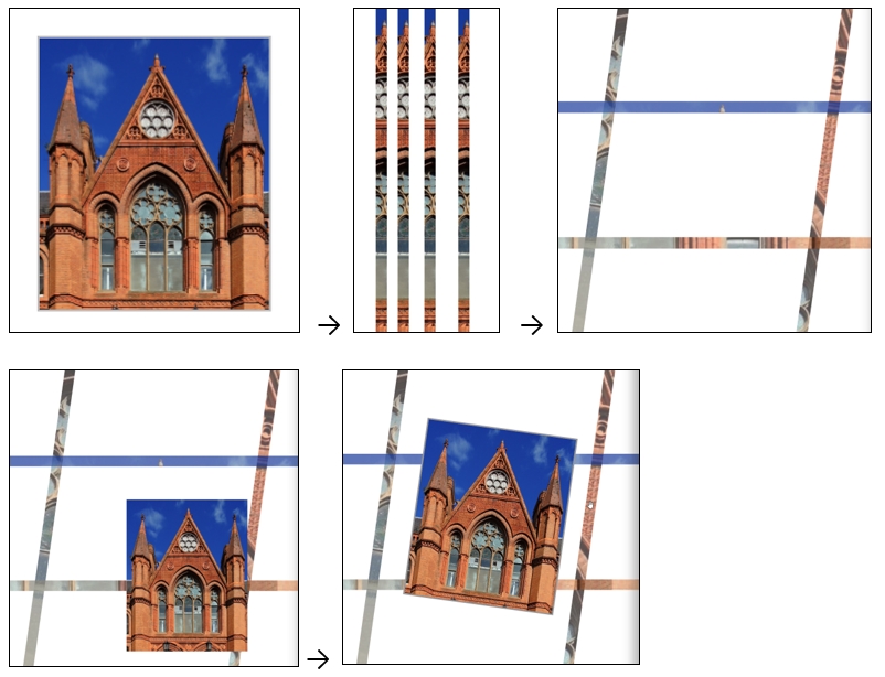 → Foto zwischen den Streifen positionieren: drehen, Größe anpassen, eventuell in den Vordergrund bringen