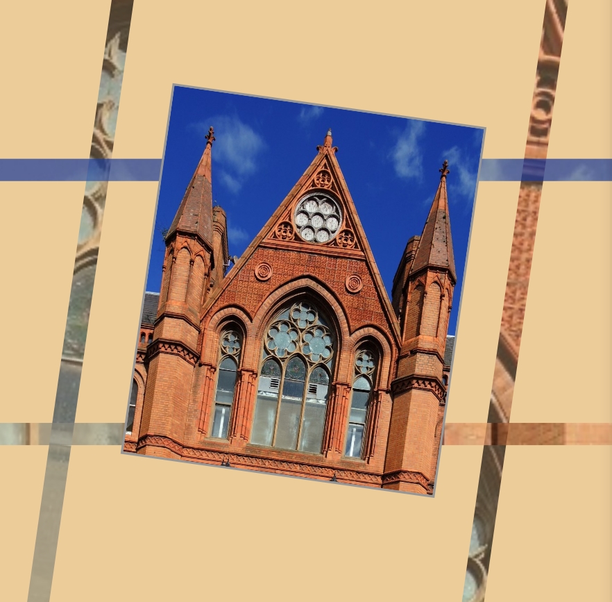 In der Maske selbst habe ich das gleiche Foto genutzt, welches ich auch über die gesamte Seite erstreckt habe. Angefangen habe ich mit einem Dreieck und dies dann mehrmals kopiert, um die Größe konstant zu halten.