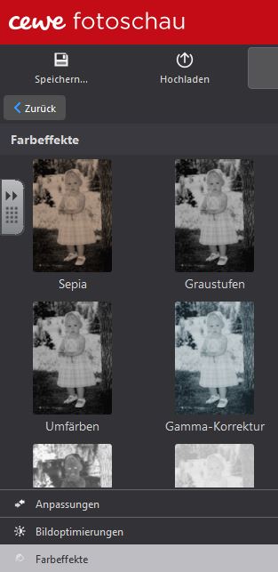 Um die Bilder noch gleichmäßiger scheinen zu lassen, bin ich jeweils per Doppelklick auf das Foto in die CEWE FOTOSCHAU gelangt und habe dort einen Graustufen Effekt gewählt.