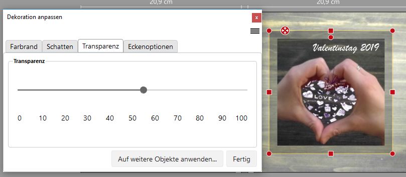 Für das Bild, das darüber liegt, habe ich per Rechtsklick die Transparenz angepasst, um einen weiteren Rahmen mit leichter Veränderung zu erstellen.