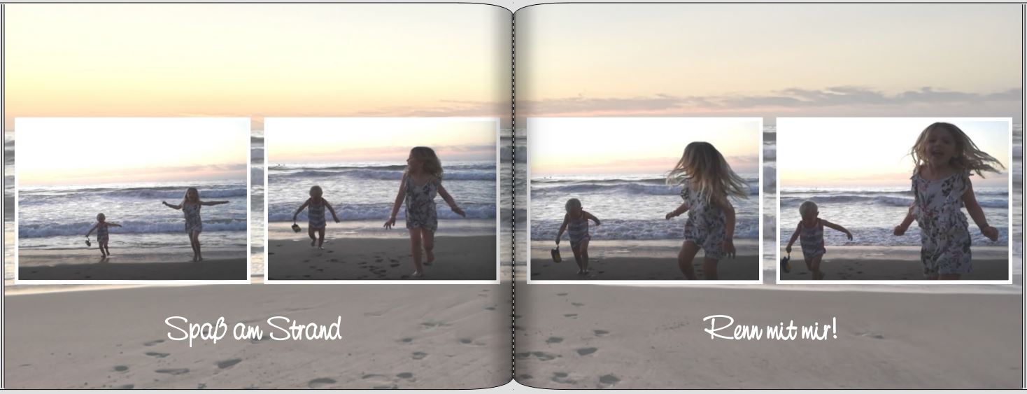 Für diese CEWE FOTOBUCH Seite habe ich Fotos aneinander gereiht, die in Sequenz aufgenommen wurden, um die Freude und Bewegung wieder zu spiegeln.