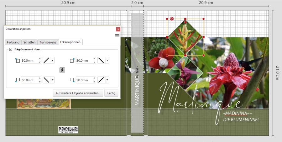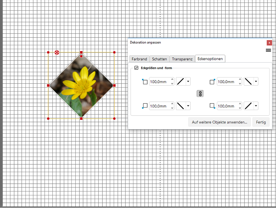 Re: Rautenform?Ja, die Eckoptionen sind prima. Bei der Raute eine genau quadratische Grundform wählen: