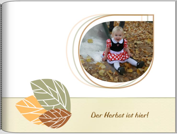Für diese herbstliche CEWE FOTOBUCH Seite habe ich abstrakte Blätter Elemente verwendet.