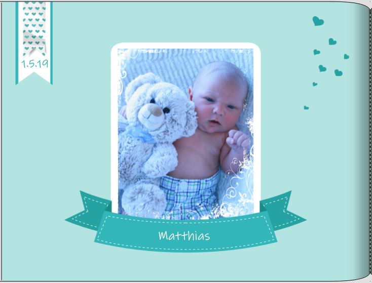Unter dem Foto habe ich dieses Banner eingesetzt und darüber eine Textbox mit dem Babynamen gelegt.