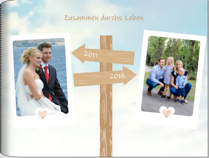 Für diese CEWE FOTOBUCH Seite habe ich zwei Fotos gegenüber gestellt, die die Entwicklung unserer Familie zu zeigen.