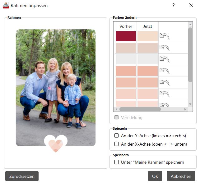 Das Herz im unteren Teil des Rahmens habe ich in der Farbgebung per Doppelklick leicht verändert.