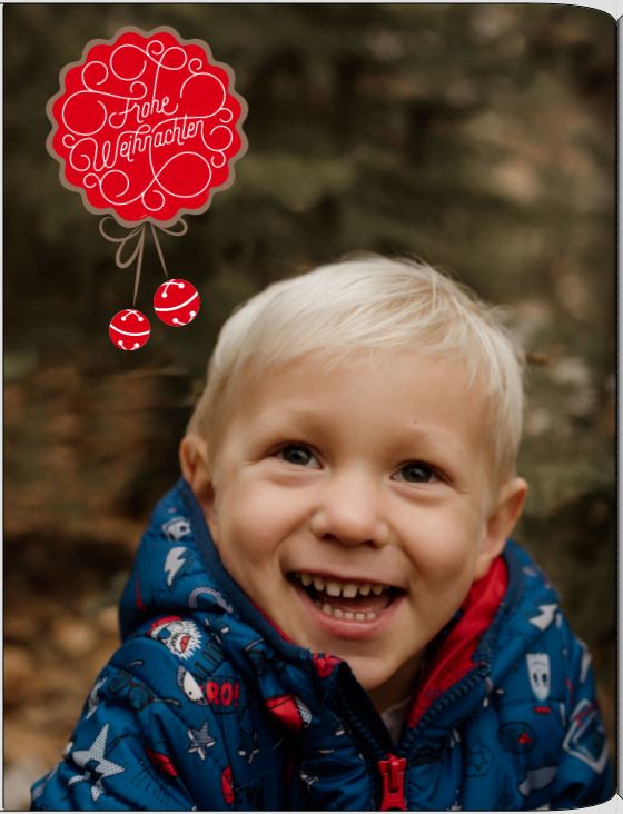 Als erstes habe ich ein Foto über die gesamte Seite erstreckt. Das Banner oben habe ich aus mehreren Cliparts aus dem Weihnachtsbereich zusammengestellt. Teilweise habe ich sie über den roten "Mehr" Button heruntergeladen.
