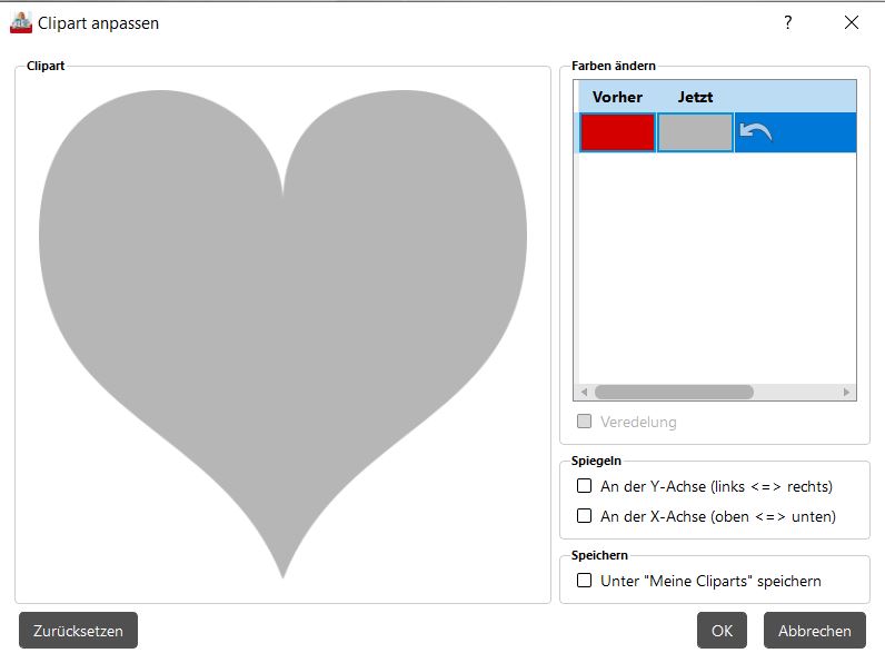 Per Doppelklick auf das herzförmige Clipart habe ich die Farbe angepasst.