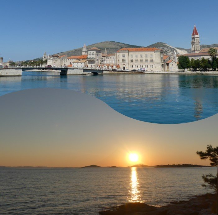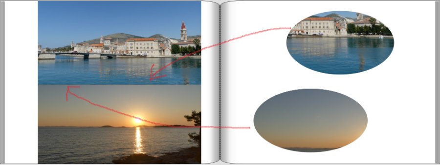 ich habe mit CEWE-Bordmitteln versucht, das Layout nachzubauen. Dafür habe ich die beiden Bilder erstmal übereinander angeordnet, dann von beiden Kopien gemacht, die Kreis-Maske Nr. 46537 darüber gelegt, sie oval in die Breite gezogen und zuletzt die ovalen Ausschnitte über die Bilder gelegt. Die Anordnung der ovalen Bilder so hinzubekommen, dass die Welle in der Mitte keinen Knick hat, ist schon eine rechte Fummelei, 100%ig geglückt ist mir das nicht auf die Schnelle. Viele Grüsse