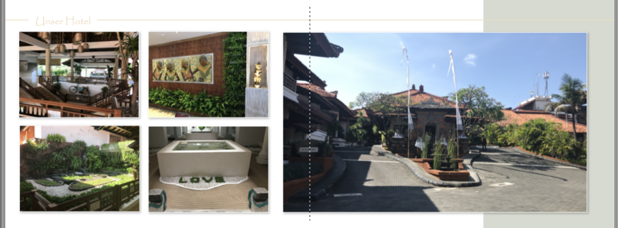 Danke fürs Zeigen Deiner Seiten. Die Rahmen finde ich gar nicht zu "klobig", aber ich glaube die Schatten sind einfach zu heftig (insbes. der 1 cm Abstand). Ich persönlich würde es einmal komplett ohne Schatten probieren. Allerdings funktioniert da weißer Rand auf weißem Hintergrund nicht :-) Aber, wie schon vorgeschlagen. Kopiere Dir doch Deine Doppelseite und experimentiere mit verschiedenen Einstellungen. Dann nimmst du das Ergebnis, welches Dir am Besten gefällt. (oder Du fragst z.B. noch ein unvoreingenommenes Familienmitglied um Rat) Viel Spaß beim Experimentieren Gruß DSL-schnell