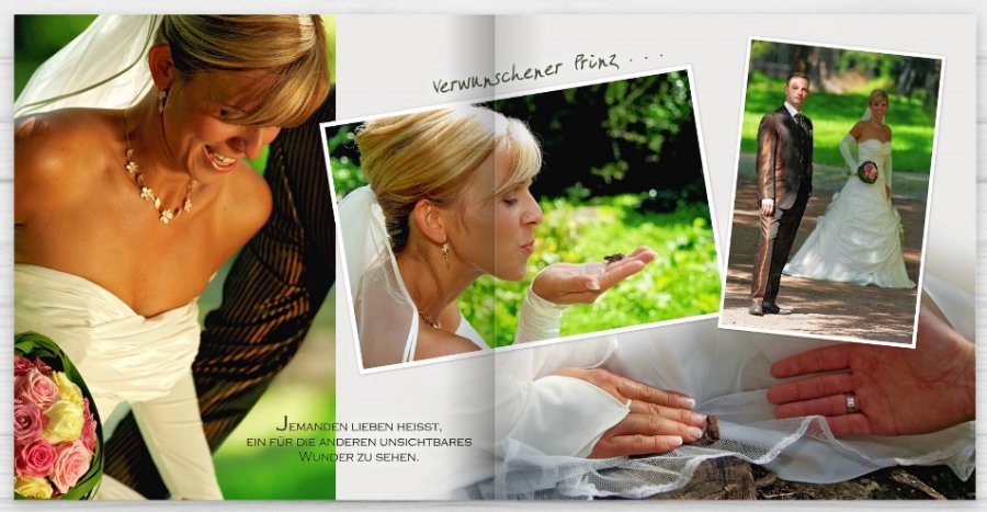 Auch wenn es technisch möglich ist, bei Layflat-Bindung Text über 2 Seiten zu schreiben, ist das aber aus gestalterischer Sicht ein abolutes No Go! Das ist einer der wichtigsten Gestaltungsgrundsätze, den man beachten sollte.