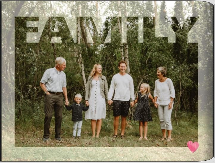 Für diese CEWE FOTOBUCH Seite habe ich eine Maske mit dem Schriftzug "Family" gefunden (Objektnummer:129145).