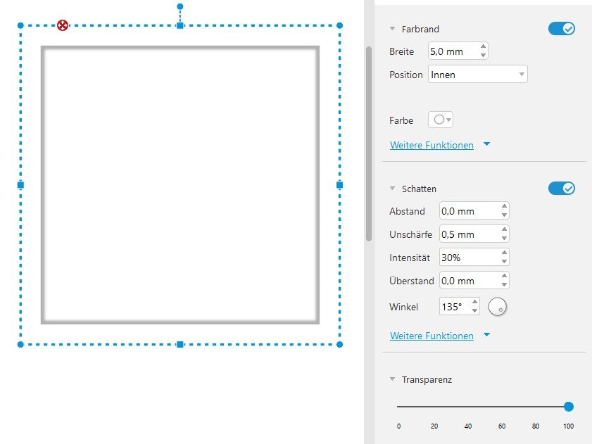 wenn du sehen willst, was du mit den Farbrandeinstellungen so alles machen kannst, schau doch mal in unser Vorlagenbuch "Einfach in Szene gesetzt". Da findest du ein ganzes Kapitel "Rahmen-Illusionen" inklusive Vorlagen, die zeigen, wie du mit einfachsten Mitteln die verschiedensten Rahmen-Effekte kreiieren kannst. Liebe Grüße phili Re: Rahmen wie ein PassepartoutHallo phili und spica, vielen Dank für eure Hilfe! Damit habe ich es tatsächlich hinbekommen