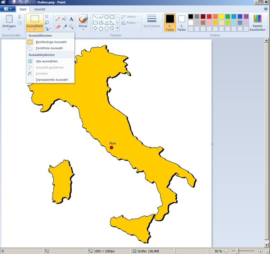 statt "Afrika" --> "Europa" und dort "Italien" auswählen: http://www.kostenlose-landkarten.de/europa.htm Die png-Datei kann über das Kontextmenü (Grafik speichern unter ...) abgespeichert werden. Das Rausschneiden der Insel Sardinien und das Umfärben mit Wunschfarbe kann z.B. mit dem Windows-Zubehör-Programm Paint erfolgen: