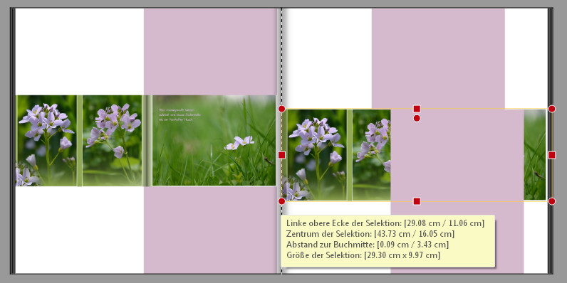 Wenn ich auf einer quadratischen Seite ein panorama-Foto (also vielmehr breit als hoch) platziere, sodass die Höhe des Fotos etwa ein Drittel der Seite ausmacht und ich das Foto genau mittig zur Seitenhöhe setzte, finde ich schaut das weniger harmonisch aus, als wenn ich es ein bis zwei cm hinunterrutsche. Ist das so? Kommt das nur mir so vor? Gibt es dazu eine Theorie (ähnlich dem goldenen Schnitt)? Re: Was ist mittigAlso, ich kann das nicht fachlich belegen und vielleicht bastle ich es mir auch nur passend, aber das ist gerade bei meinem Experiment raus gekommen: